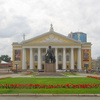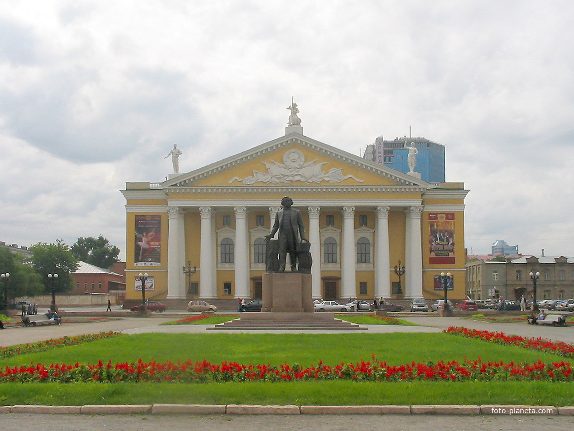 Памятник стоит напротив Театра Оперы и балета, скульптором является В. А. Авакян, архитектором Е. В. Александров. Памятник стоит на гранитном постаменте высотой два с половиной метра. Высота памятника - четыре с половиной метра. С одной стороны от композитора изображена большая нотная тетрадь, на которую Глинка опирается одной рукой, а в другой руке у копозитора гармонь. Памятник открыли в 2004 году.