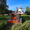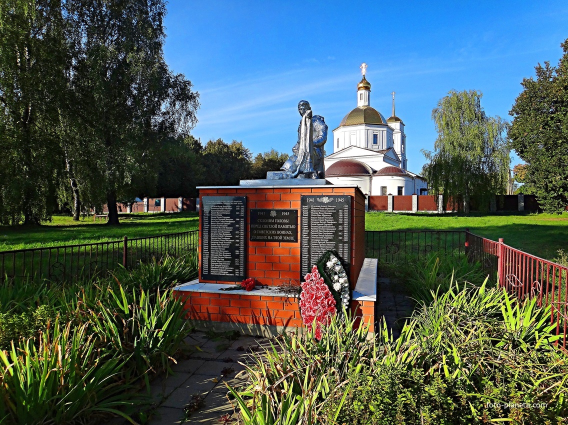 Мемориал погибшим в Великой Отечественной войне. За ним - Богоявленский храм.